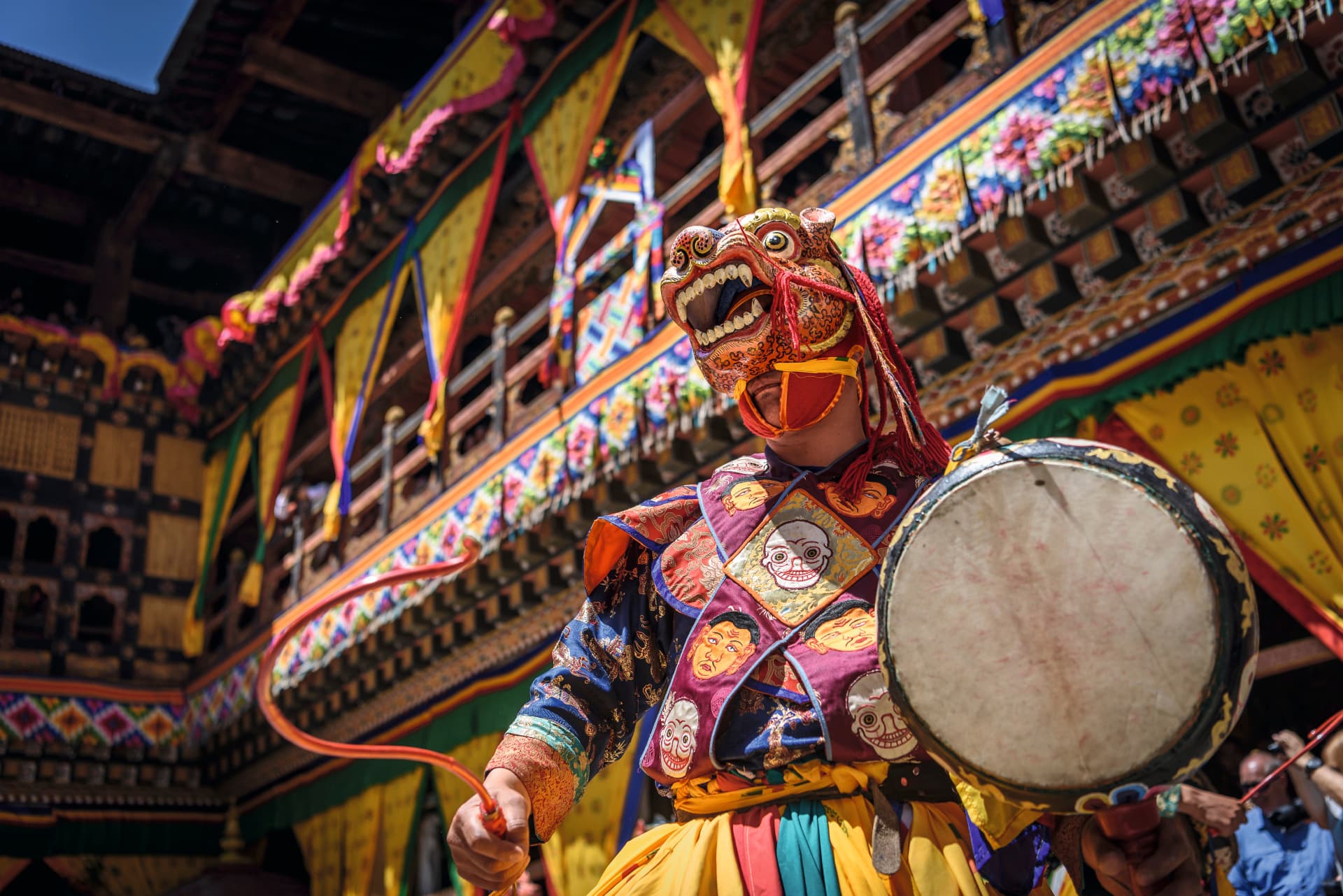 Caminata hacia el Monasterio Taktsang, tambiénconocido como el “Nido del Tigre”, colgado en una roca a casi 900 metros sobre el valle. Según la leyenda, el Gurú Padmasambhava (el Segundo Buda) llegó aquí volando como un gre. Almuerzo en restaurante local. Por la tarde, visita alTemplo Kyichu Lhakhang, construidoen el siglo VII por el rey betano Songtsen Gampo. Es uno de los 108 templos sagrados del Himalaya.