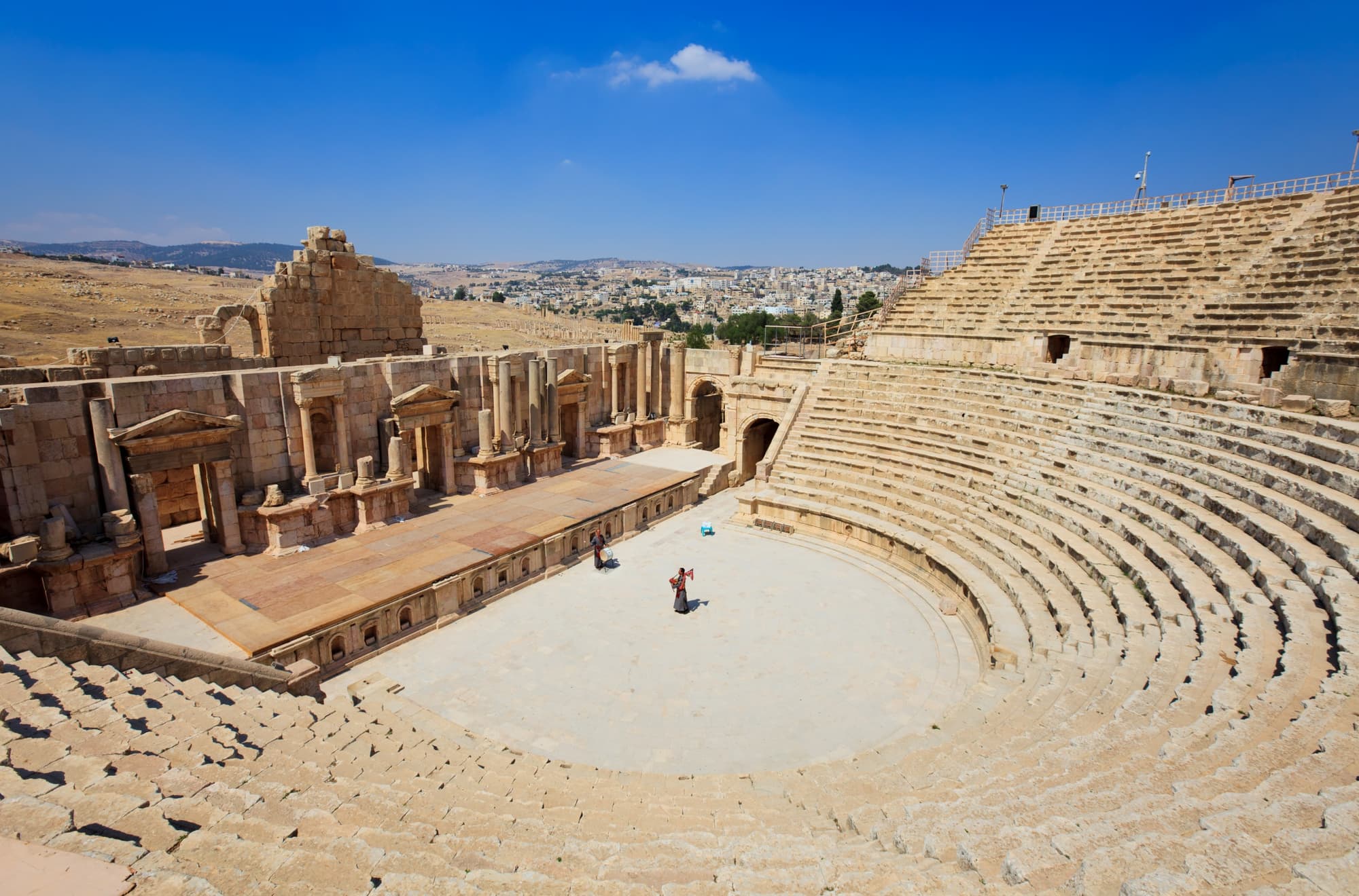 Visita panorámica de la ciudad de Ammán. Sus más importantes avenidas, la Ciudadela, el centro urbano y el Teatro Romano. Continuación hacia la ciudad de Jerash, una de las ciudades de Decápolis. Jerash se encuentra al norte de Ammán, aproximadamente a 45 km y a una hora de distancia por carretera. Durante la excursión, visitaremos el Arco de Triunfo, la Plaza Ovalada, el Cardo, la Columnata, el Templo de Afrodita y finalizando, el Teatro Romano, con una maravillosa acústica. Después visitaremos el Castillo de Ajlun, fortaleza construida en 1185 y reconstruido más tarde en el siglo XIII, por los Mamelucos después de su destrucción por los mongoles. Es un castillo de la época de los Cruzados, situado en lo alto de la montaña y desde el que se contempla una Hermosa vista. Al finalizar la visita, regreso a Ammán.
